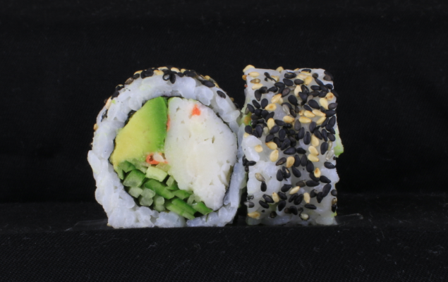 surimi,avocado,agurk rullet i sort/hvid sesam.
