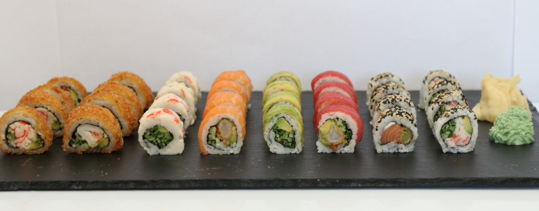 Red dragon 4stk. Dragon roll 4 stk. Snow roll 4stk. Green forest 4stk. Alaska 4stk. Califonia 4stk. Dynamite califonia 8stk.