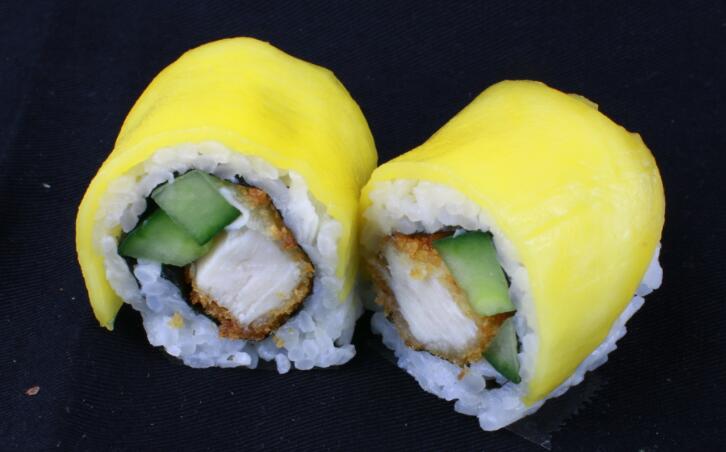 Tempura kylling, agurk, chilimayo insideout toppet mango