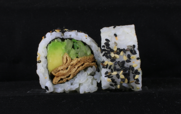 æble,avocado,agurk,inari,wakami rullet i sort/hvid sesam.